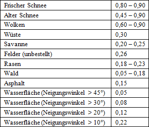 Reflexionszahl der Umgebung (Albedo)