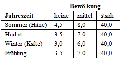 Eigenschaften der Atmosphäre (Werte siehe ÖNorm B8110-3):