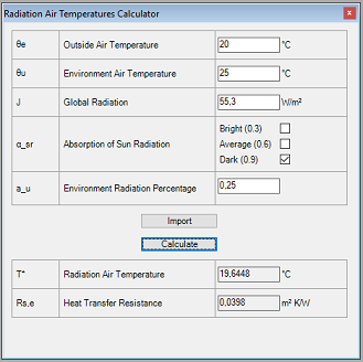 Jeżeli w programie AnTherm zostanie wprowadzona temperatura promieniowania slonecznego, zamiast temperatury powietrza zewnętrznego, oznacza to, że bierze się pod uwagę nie tylko dobowe promieniowanie słoneczne, ale także wymianę promieniowania długofalowego między „powierzchniami zewnętrznymi” a zewnętrznymi elementami budowli (niebo-ziemia).