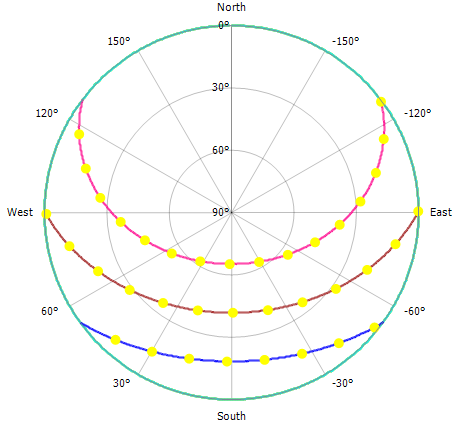 Droga Słońca po Orbicie, jako Polar-diagram (z przesłonięciem horyzontu)