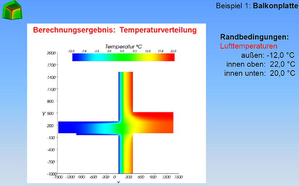 Równocześnie, na podstawie obliczonego rozkładu temperatur, wylicza się rozkład ciśnienia nasyconej pary wewnątrz badanej konstrukcji. . Porównanie rozkładów ciśnienia cząstkowego pary z ciśnieniem nasyconym prowadzi bezpośrednio do odpowiedzi, czy w częściach konstrukcji budowlanej należy się liczyć z kondesacją czy też nie. Obszary, w których cząstkowe ciśnienie pary jest większe aniżeli ciśnienie pary nasyconej, są oznaczane jako zagrożone kondensacją i mogą być przedstawione w formie graficznej.